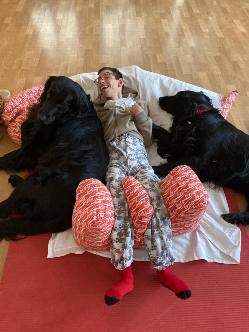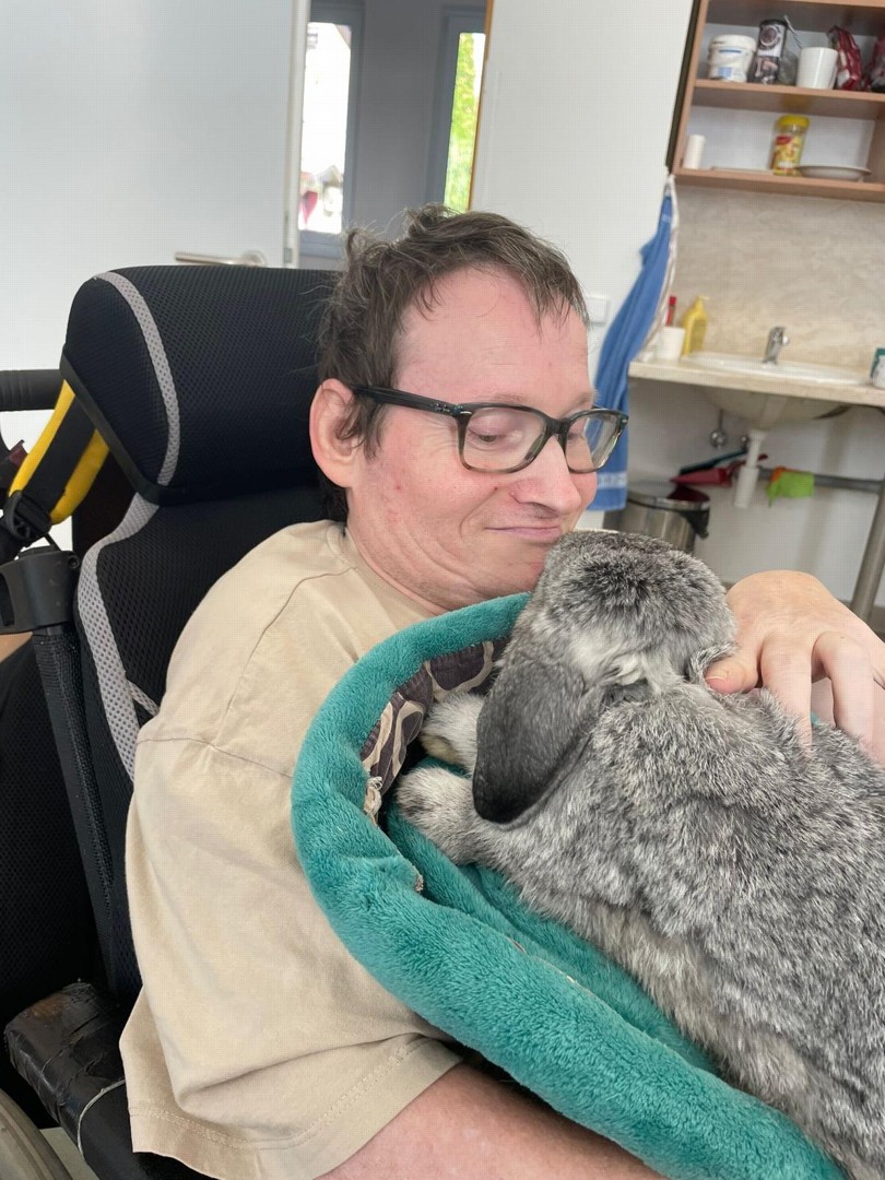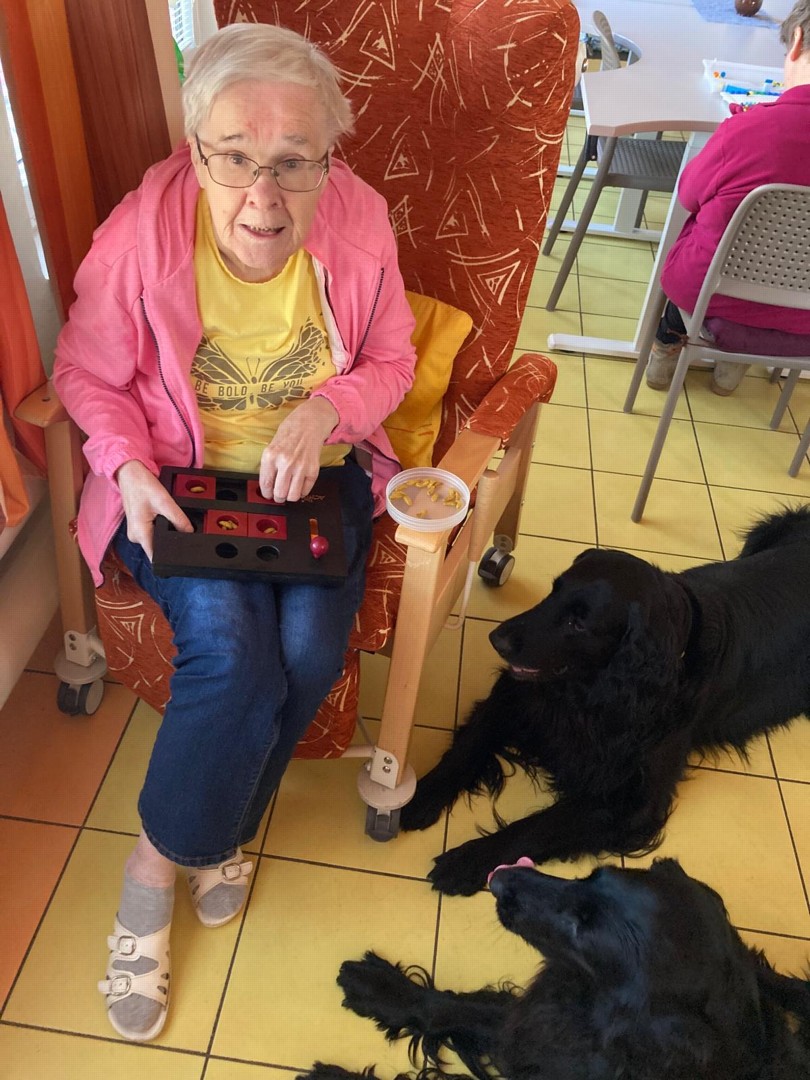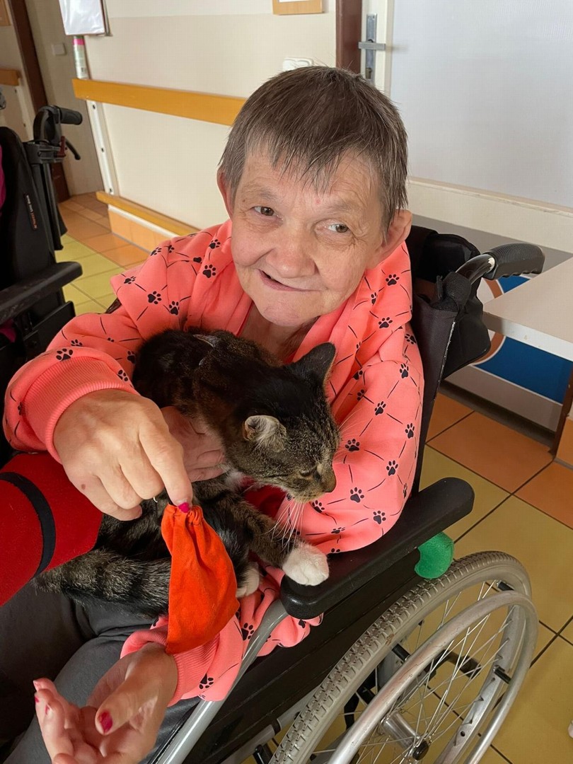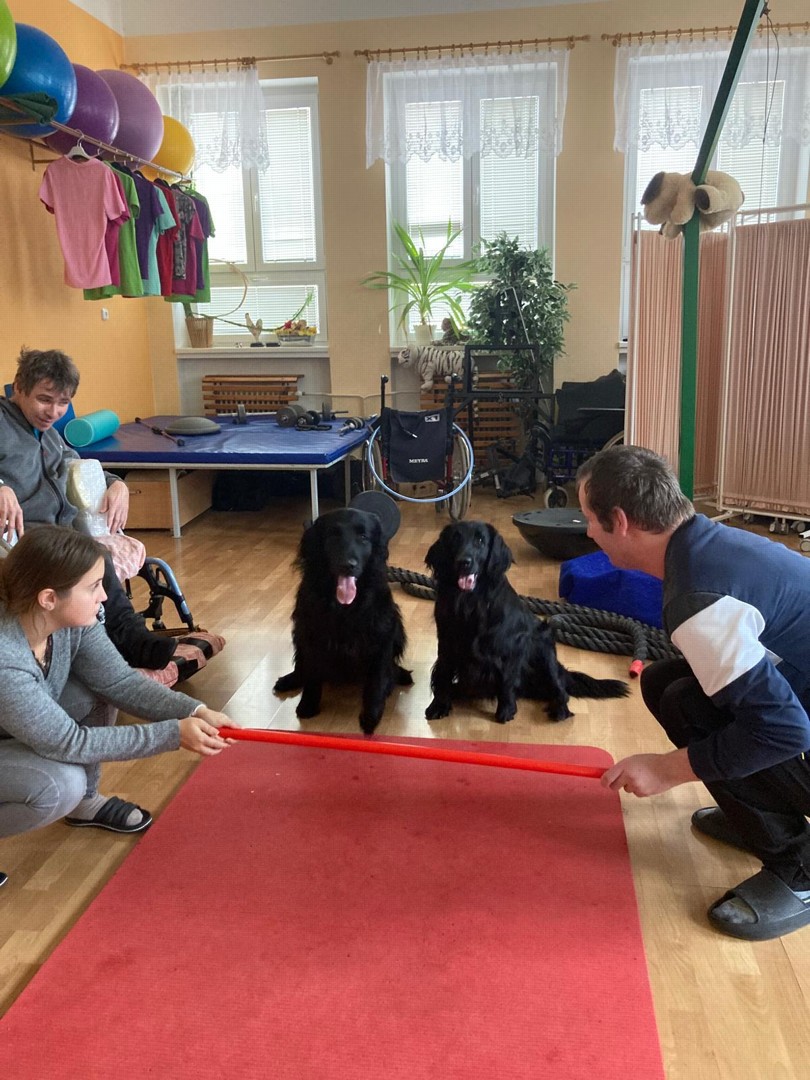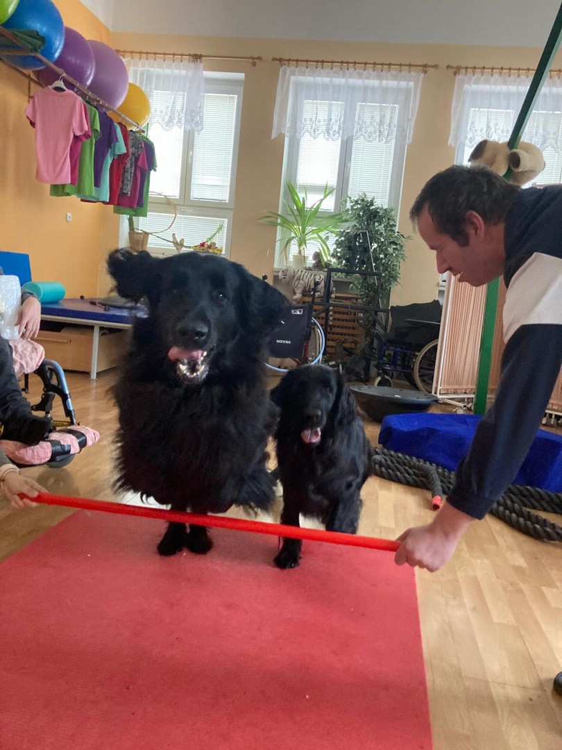 V rámci animoterapie nabízíme kontaktní terapii se psy (canisterapii), s koňmi, králíky, kocourem.