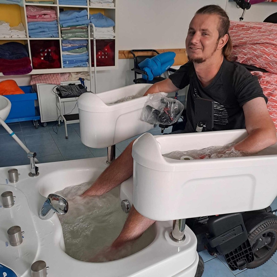 Na oddělení rehabilitace máme k dispozici vířivé vany pro dolní a horní končetiny, vířivý bazén a od roku 2004 nabízíme v rámci hydroterapie i rehabilitační bazén s pohyblivým dnem.